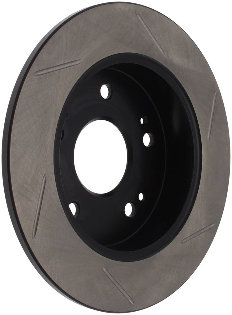 StopTech Slotted Sport Rotors are 1-piece direct replacement brake discs for factory brake systems and stock calipers that look great behind your wheels – and offer significantly improved braking performance. The unique slotting aids with heat and brake dust dispersal; prevents glazing of the pads; adds bite and improves wet and dry braking performance. Built to last; the black e-coating provides protection from corrosion and the high carbon metallurgy (in most applications) offers quieter operation; better crack resistance and increased performance.