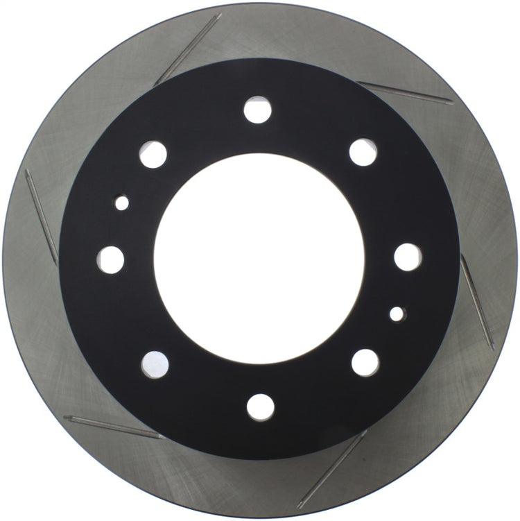 StopTech Slotted Sport Rotors are 1-piece direct replacement brake discs for factory brake systems and stock calipers that look great behind your wheels – and offer significantly improved braking performance. The unique slotting aids with heat and brake dust dispersal; prevents glazing of the pads; adds bite and improves wet and dry braking performance. Built to last; the black e-coating provides protection from corrosion and the high carbon metallurgy (in most applications) offers quieter operation; better crack resistance and increased performance.