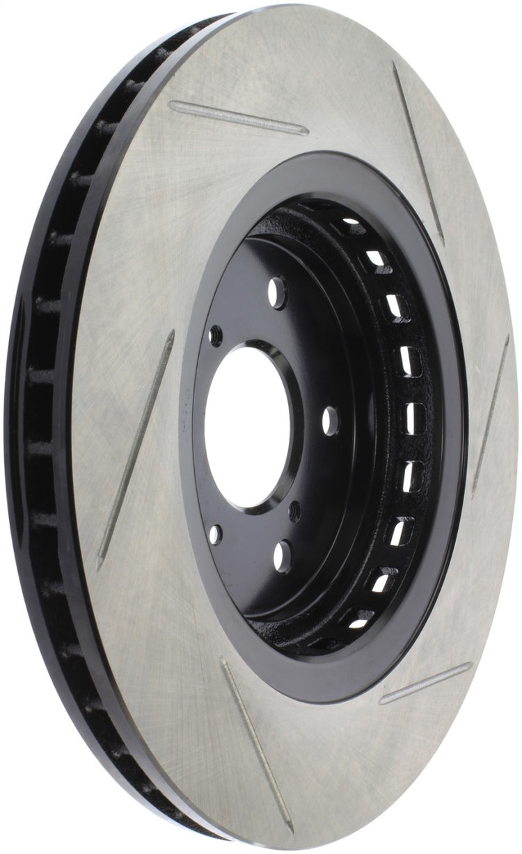 StopTech Slotted Sport Rotors are 1-piece direct replacement brake discs for factory brake systems and stock calipers that look great behind your wheels – and offer significantly improved braking performance. The unique slotting aids with heat and brake dust dispersal; prevents glazing of the pads; adds bite and improves wet and dry braking performance. Built to last; the black e-coating provides protection from corrosion and the high carbon metallurgy (in most applications) offers quieter operation; better crack resistance and increased performance.